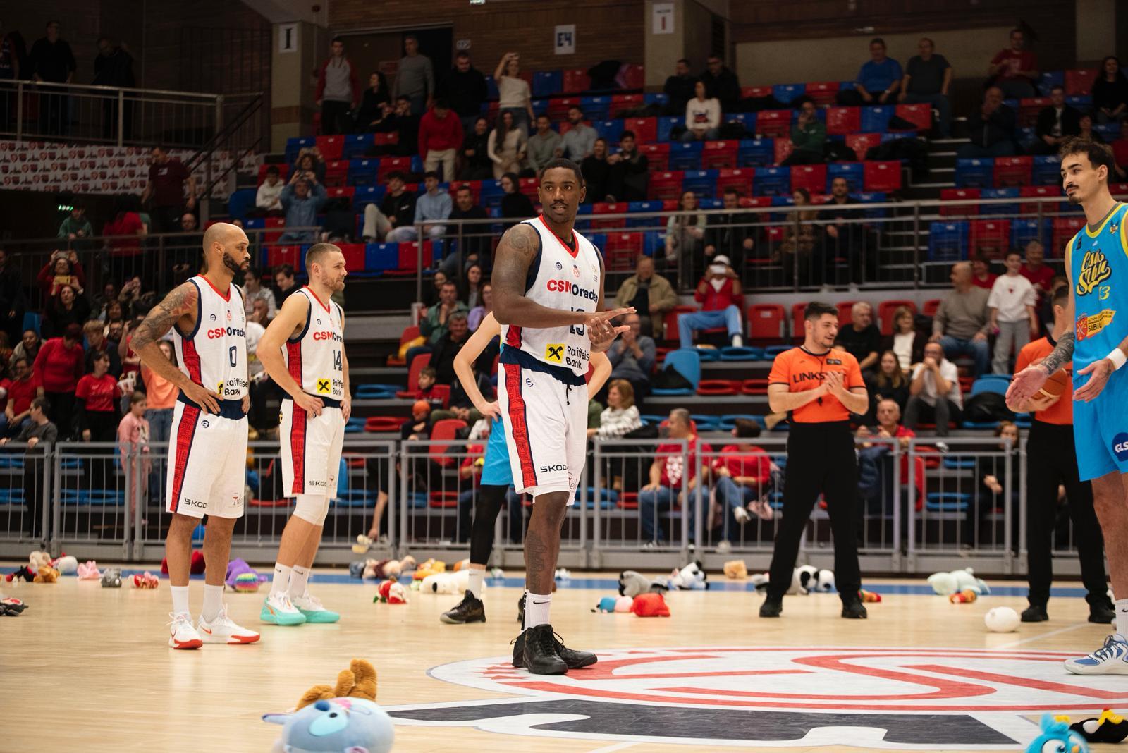 CSM CSU Raiffeisen Oradea, în Arena Antonio Alexe, a dus tradiția aruncării plușurilor pe teren mai departe, iar începutul meciului cu CSU Sibiu a transformat parchetul într-un simbol al solidarității și al bucuriei oferite copiilor mai puțin norocoși.